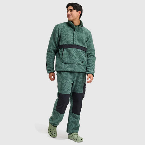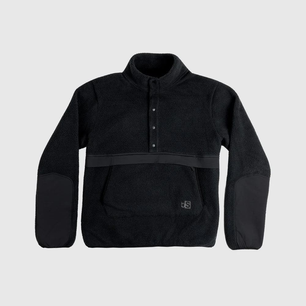Elevate your fleece. Throw it on after a climb, for the drive, at camp, or on a quick hike – the Caldera ½ Snap delivers cozy sherpa comfort with weather-resistant performance. The heavyweight sherpa fleece made from 100% recycled polyester provides breathable warmth, DWR-treated woven overlays resist abrasion and light moisture in high-wear zones, and the five-snap neckline makes for easy venting. A big kangaroo pocket and discrete zip pocket secures essentials and the relaxed fit makes layering easy and movement effortless.